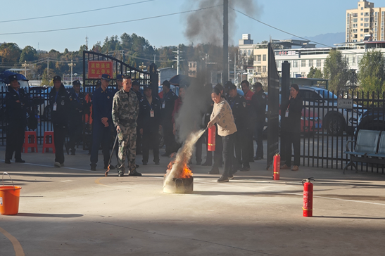 实践演练环节是本次活动的一大亮点。 “火焰蓝”任务团队在现场演示了灭火器和消防水带的操作程序,并指导设施员工和居民进行实际操作,从站立姿势到喷射角度,不断改变一切,以确保参与者掌握初步的消防技术。火焰蓝任务组还策划并开展了疏散演练。模拟火灾发生后,引导居民蹲下、捂住口鼻,沿疏散路线快速有序疏散,有效提升应急处置能力。